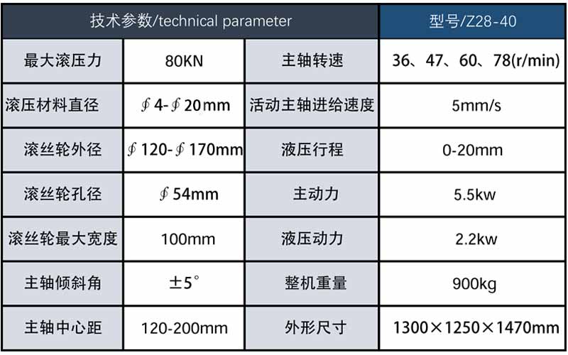 邢臺(tái)東澤機(jī)械Z28-40型滾絲機(jī)設(shè)計(jì)結(jié)構(gòu)合理堅(jiān)固,配用主動(dòng)力大、噪音小、故障率低、加工螺紋精度高,適用范圍廣,可滾壓各種螺紋,包括普通螺紋、梯形螺紋以及模數(shù)螺紋,也可對工件進(jìn)行成型、滾光、滾紋等滾壓加工。產(chǎn)品通過萬向軸傳動(dòng),自動(dòng)潤滑系統(tǒng),操作方便,并設(shè)有手動(dòng)控制、腳踏控制和自動(dòng)控制。生產(chǎn)效率高,勞動(dòng)強(qiáng)力低,配以相應(yīng)的滾絲輪可以加工多種多種型號(hào)的普通螺栓和各種異型螺栓 。